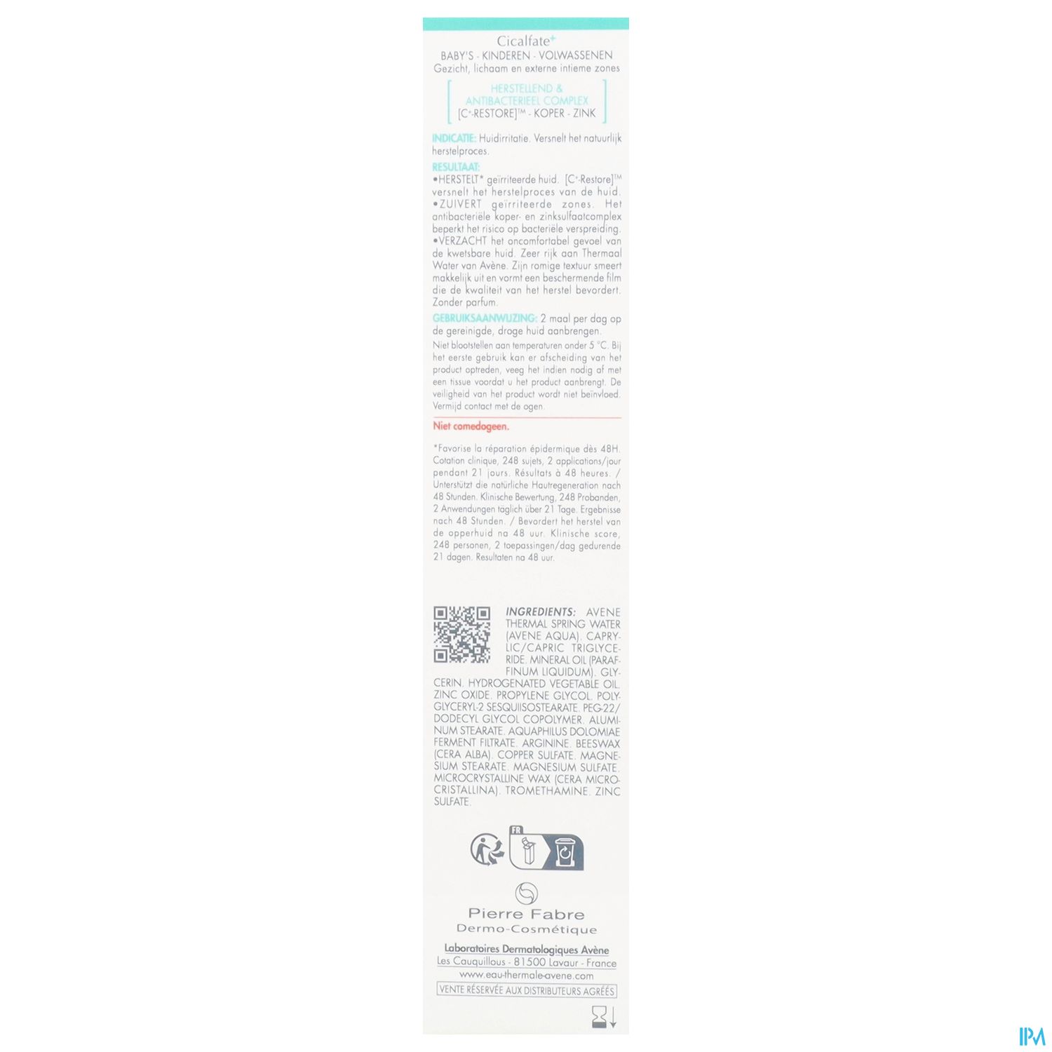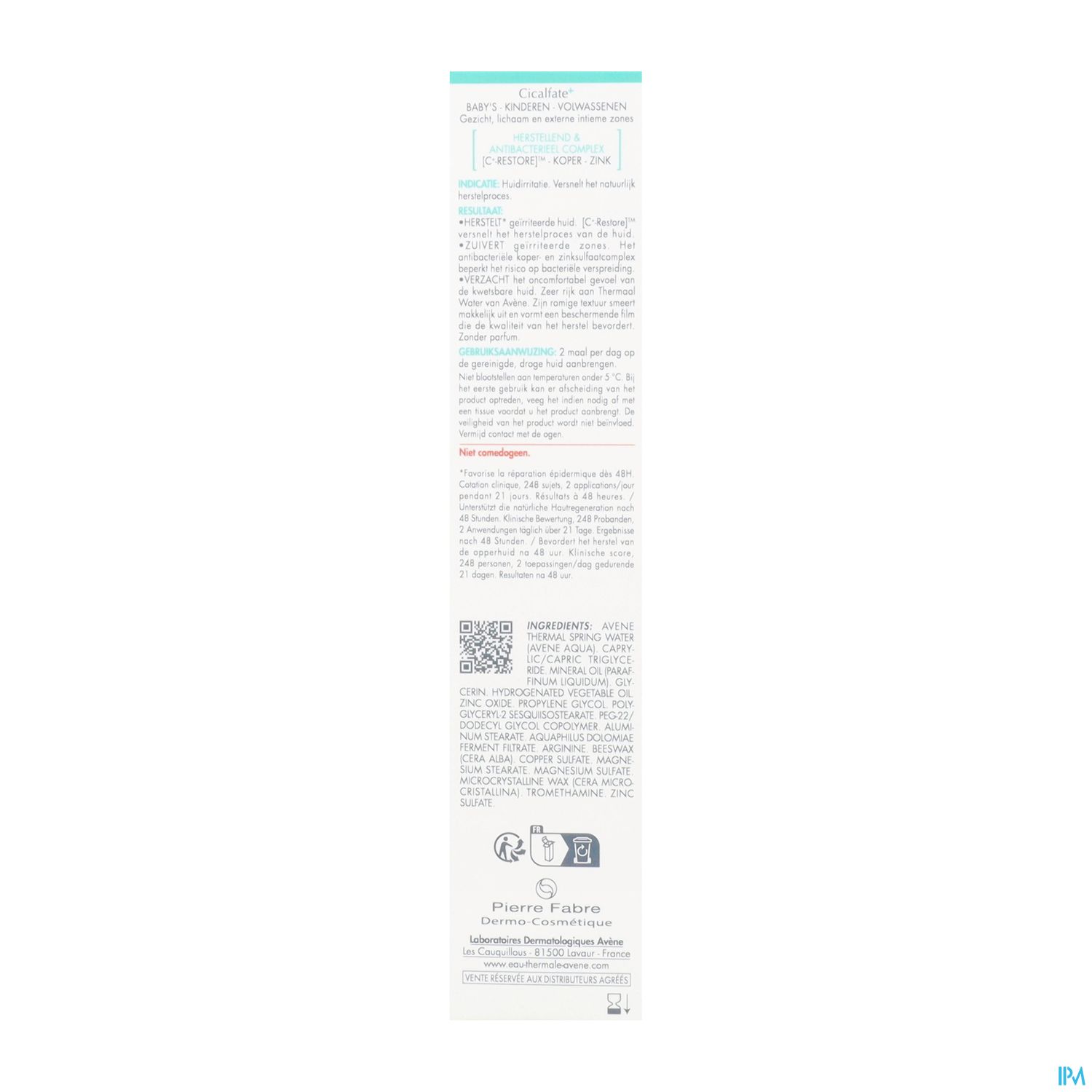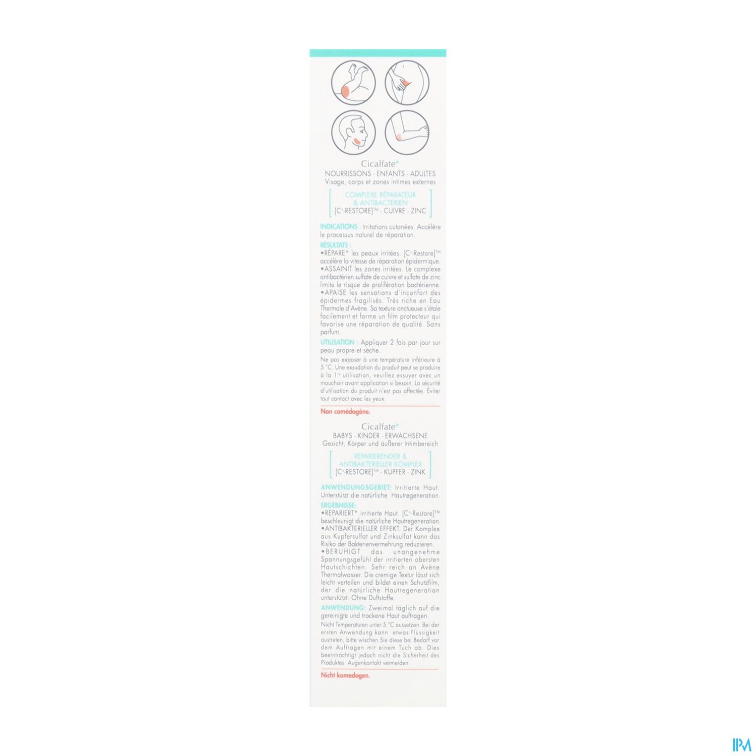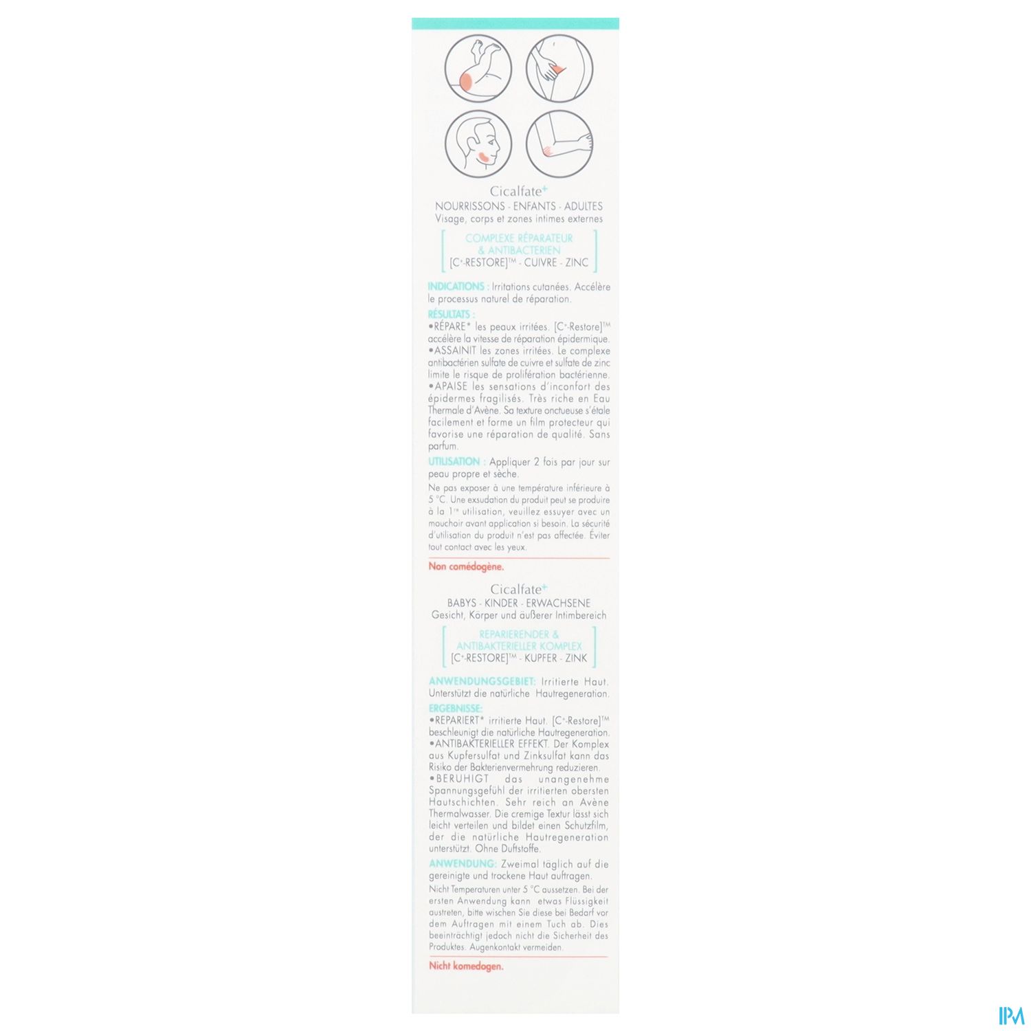 Die Cicalfate+ Akutpflege-Creme, die in Tuben mit 15, 40 oder 100 Milliliter Inhalt erhältlich ist, besitzt eine cremige Textur und basiert auf der einzigartigen [C+-Restore]™-Technologie, die die epidermale Regeneration fördert. Die Zusammensetzung mit Kupfer- und Zinksulfaten hemmt die Vermehrung von Bakterien und unterstützt so die Hauthygiene. Darüber hinaus bietet die Creme Linderung bei Hautirritationen sowie Rötungen und verbessert den Hautkomfort.