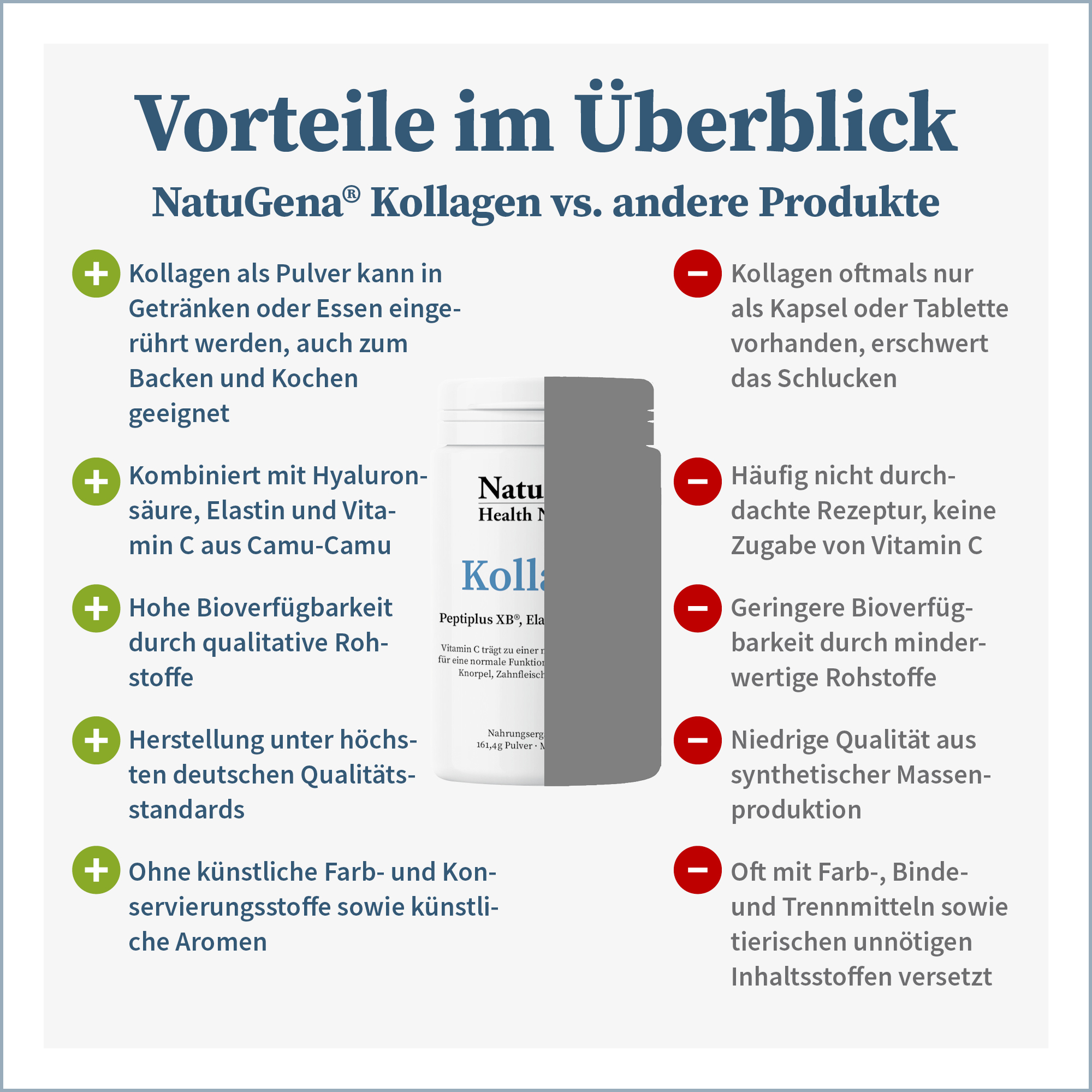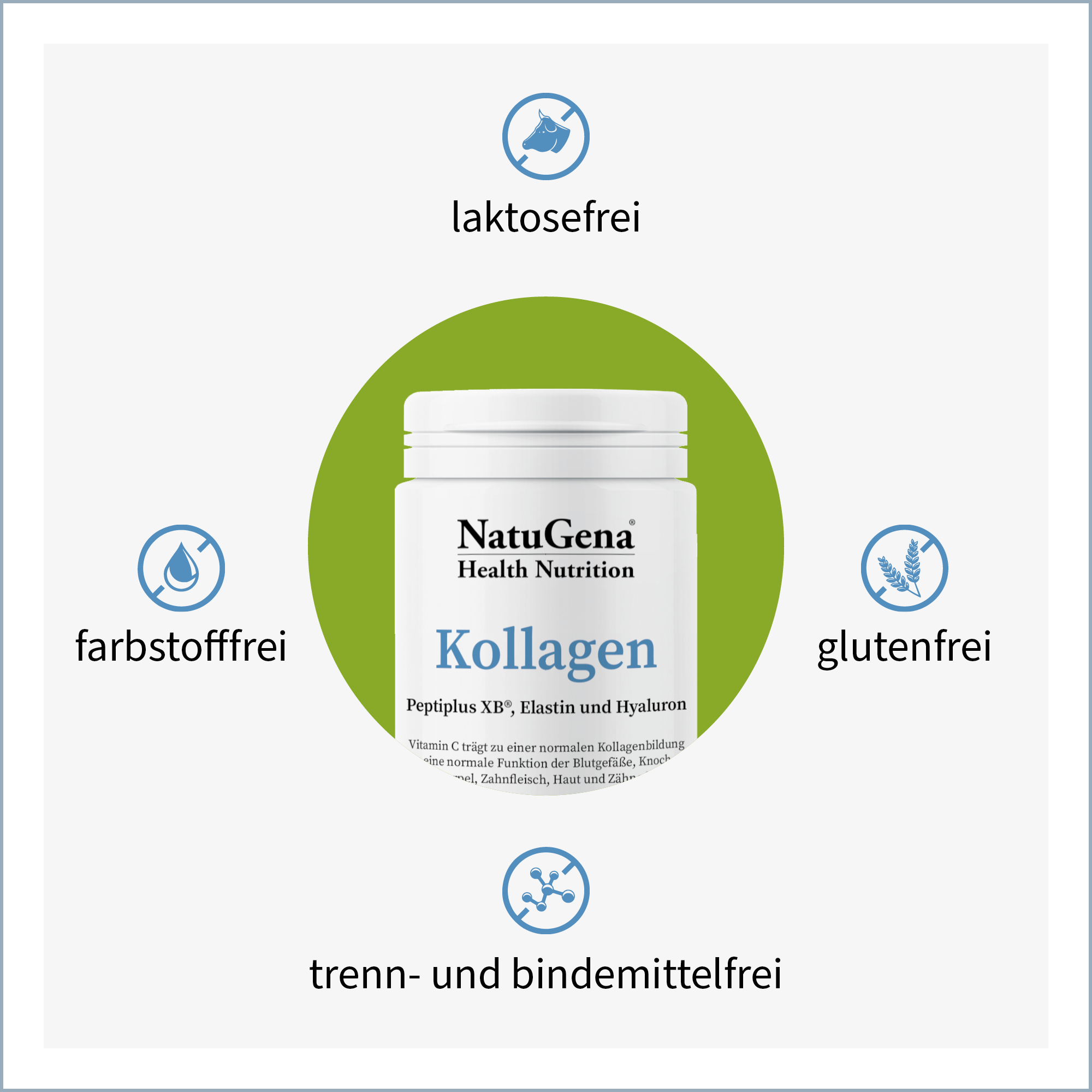 Haut und Zähne bei durch Vitamin C.Der Kollagenanteil im NatuGena Produkt besteht zu 100% aus
